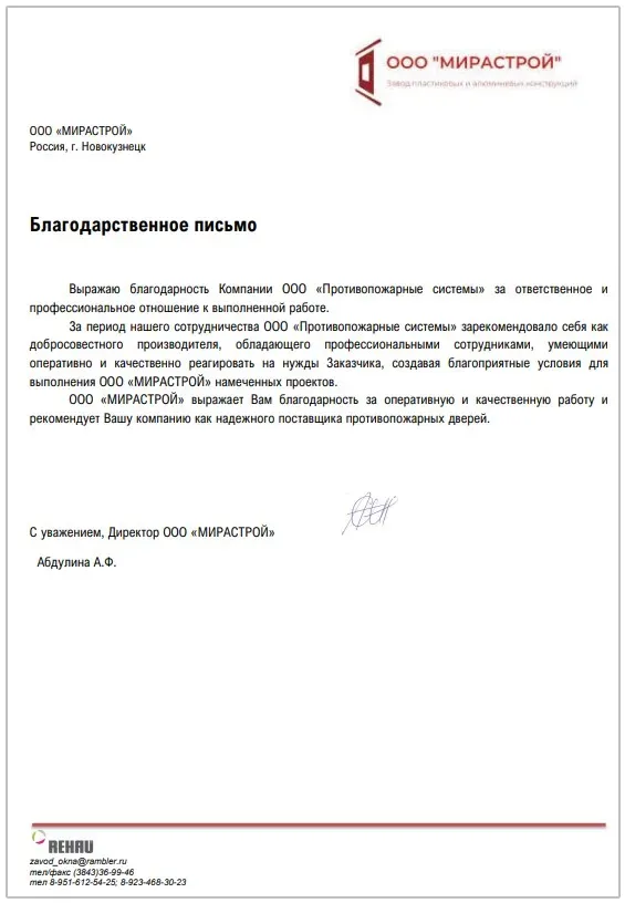 Благодарственные письма